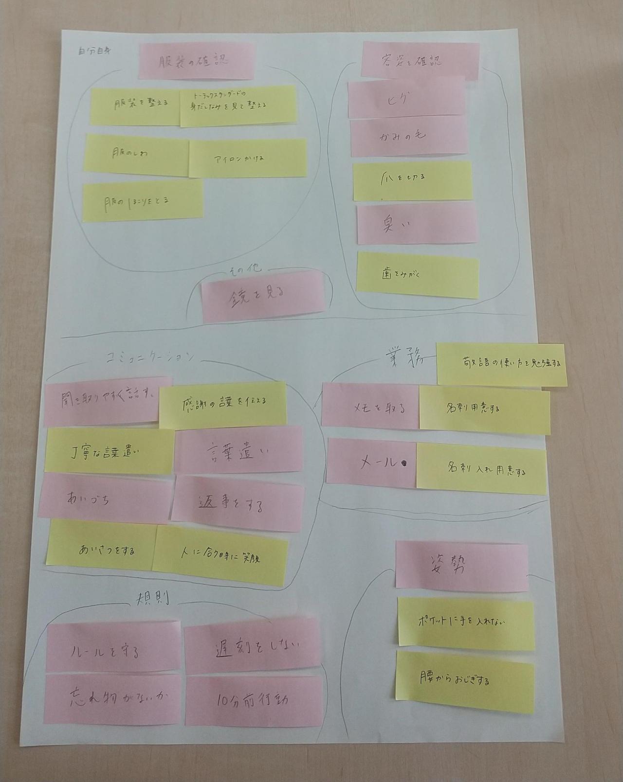今回の演習では、名詞のみ、解決策を含めたものなど挙げたものがバラバラであったり他の人にはわかりにくいものであったりして上手く書くことができませんでした。今後、記録を残す際には、自分以外の人も読むということを意識して、誰が読んでも理解できる文章を書きたいと思いました。