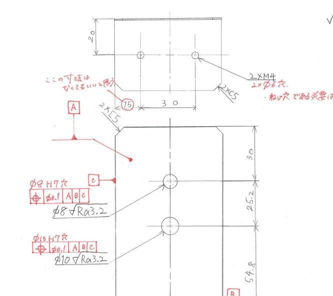 本日の研修ではバラシ作業を行いました。組立図面から部品を抜き出し部品図を作成することをバラシと言います。この部品図を作成する際には元になる組立図をよく読み、形状や機能を理解することが大切です。読み取った情報をもとに、加工方法や加工手順などを考え、それに基づき寸法や幾何公差、表面性状など必要な情報を記入しなければなりません。設計者の端くれとして頑張って製図をしていますが、なかなか難しく、心が折れてしまいそうです。それでも、同じ志を持った同期たちと積極的にコミュニケーションを取り、互いに切磋琢磨することで、良い機械設計エンジニアになれるよう頑張りたいと思っています。
