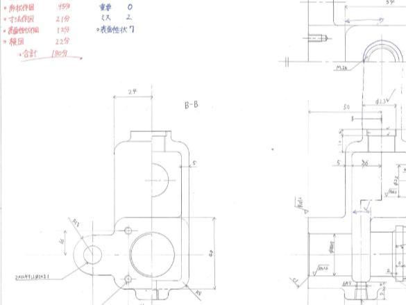 今回は、多くの部品から構成される装置の組立図から、本体の部品だけを抜き出して部品図として製図する作業を行いました。図面を描いたあとにチェックしてみると、必要な寸法や表面性状記号が抜け落ちていたり、正確に描けていなかったりして、多くのミスがありました。この穴はどの部品と関係するのか、なぜこの寸法はこの線を基準として表記されているのかといった、部品の役割や他部品とのつながりをきちんと考えるようにすることで、もっと製図の精度を上げ、ミスを減らせると考えました。図面の装置がどのような動作をし役割を果たすのかなど理解できるよう機械知識を増やし、ミスのない図面を描けるよう努力を重ねていこうと思います。