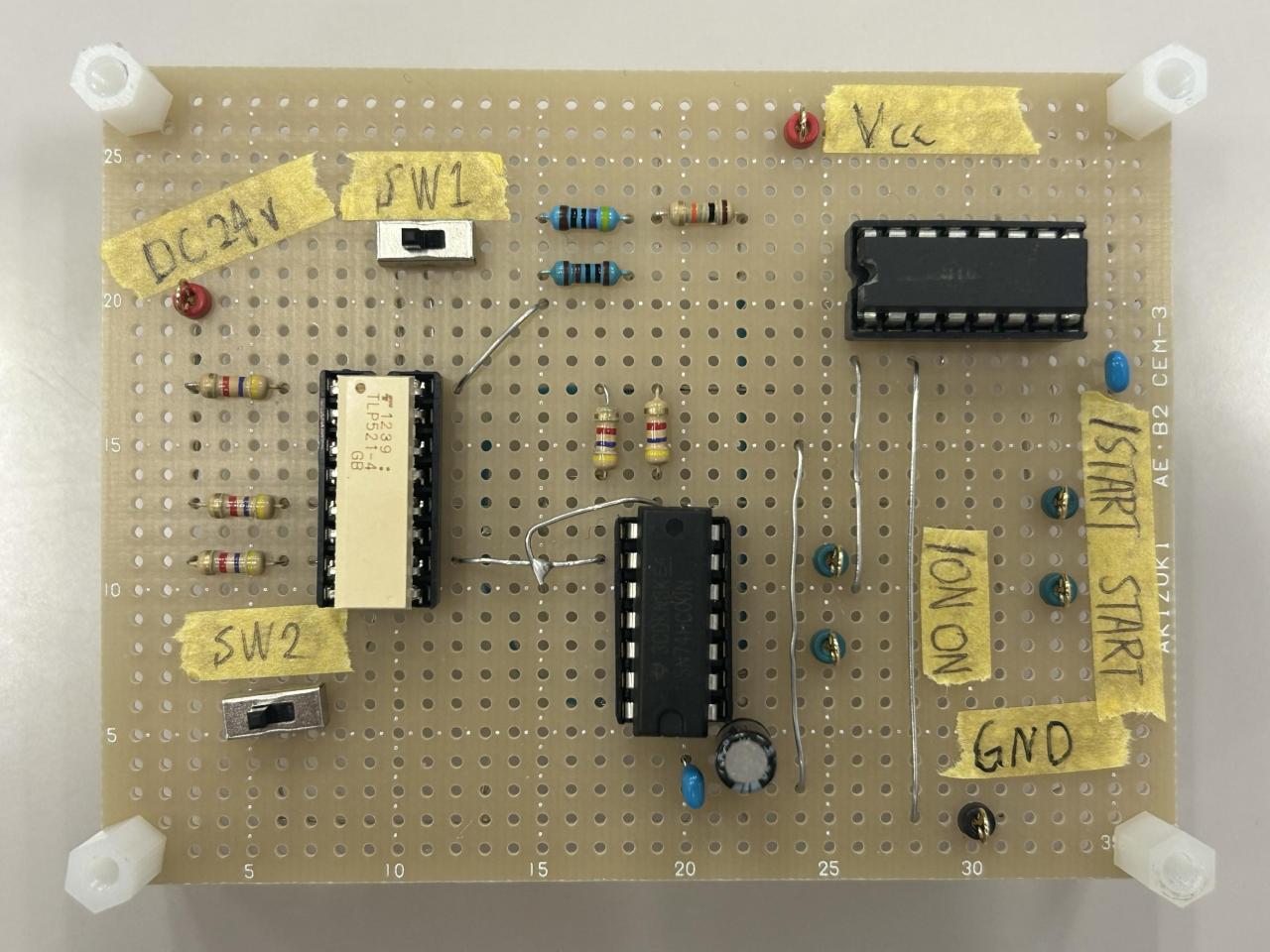 技術研修で警報装置回路の設計・製作に取り組みました。約3週間にわたる実習の中で、今回はその最終日となりました。私は、6つある回路のうち2つの回路を担当し、回路設計から製作、そして完成後の測定まで一通りの工程を経験しました。中でも回路設計は特に難しく感じ、試行錯誤の連続でした。また、製作中にも何度かトラブルが発生し、対応に苦戦する場面もありましたが、最終的には警報装置回路を無事に完成させることができ、大きな達成感を得ることができました。今回の実習を通して、技術的な知識やスキルだけでなく、グループワークの進め方や協力の大切さについても学ぶことができ、非常に有意義な経験となりました。