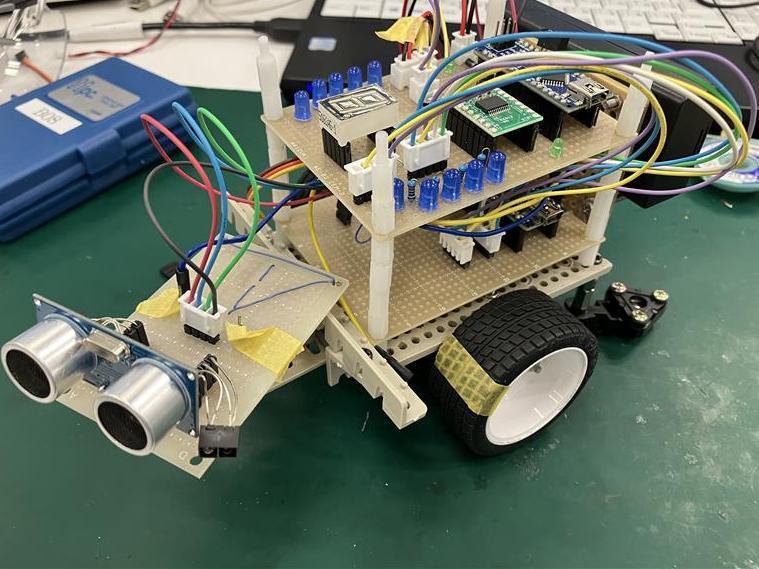 さらに、動作を視覚的に分かりやすくするために7セグメントLEDを取り付け、ユーザーが見て楽しめる工夫も加えました。加えて、マイコンボードを2つ使用し、相互通信によって処理を分担することで、できることの幅を広げることにも挑戦しました。