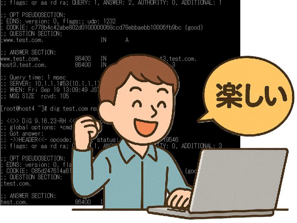 研修が始まる前は「コマンドって難しそう…」というイメージが強くて、できるのかなぁ、覚えられるのかなぁと正直ちょっと不安でした。しかし、実際に学んでみると少しずつ理解できるようになってきて、気づけば「コマンド=楽しい!」という印象に変わっていました。実機を使って設定する演習では、うまくいったときの達成感がとても大きくて、「やってみてよかった」と心から思えました。もちろん覚えることは多く、簡単ではないけれど、「自分には無理」と決めつける前に、まずは挑戦してみることの大切さを実感した一日でした。